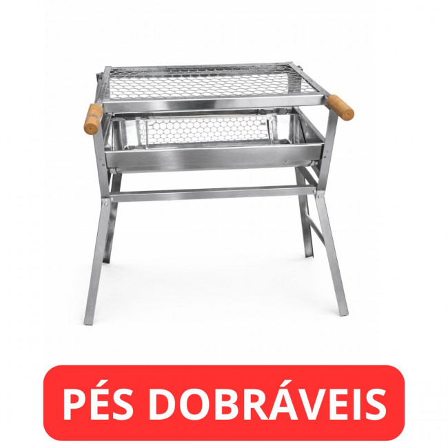 Churrasqueira em aço inox com 1 Grelha e Pés Dobráveis