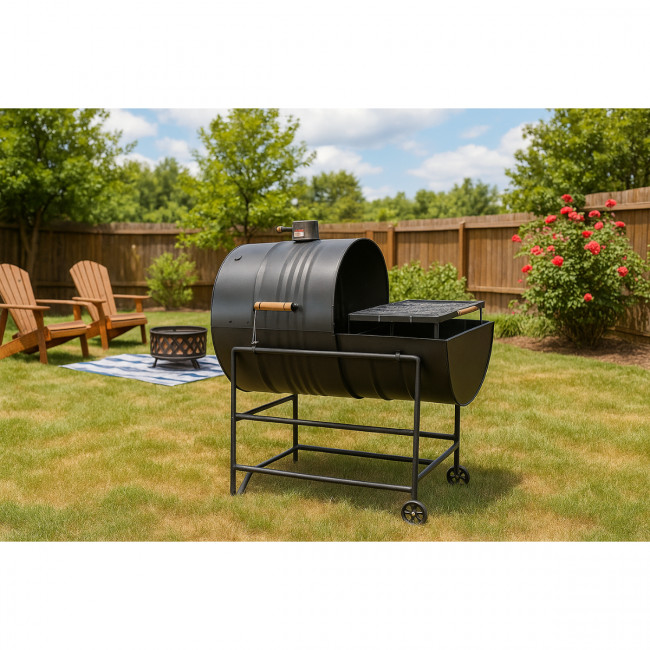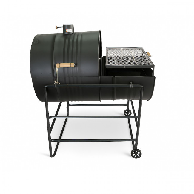 Nela você pode preparar costela, cupim no bafo e ao mesmo tempo, picanha, linguiça etc na grelha.