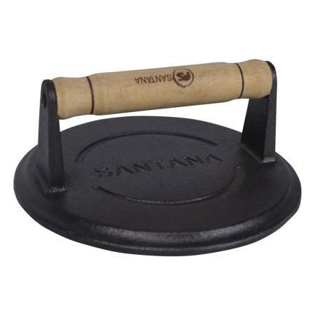 Quer preparar Smash Burguers com ainda mais sabor e qualidade? Então o Prensador da Santana é perfeito para você! Feito em ferro fundido, com cabo de madeira, ele tem o peso e tamanho perfeito para prensar seus hambúrgueres diretamente na chapa, e ainda pode ser utilizado com carnes, bifes e similares. Os produtos em ferro fundido da Santana, além de contribuírem com a saúde devido a absorção de porcentagens de ferro pelo alimento, possuem acabamento revestido feito com óleo 100% vegetal, por meio de processo natural livre de produtos químicos.
